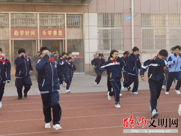 警報聲響起,所有學(xué)生用浸濕的毛巾或衣服掩住口鼻,躬身彎腰,沿著既定疏散路線快速向操場指定安全區(qū)域撤離,各班級迅速清點人數(shù)并向年級主任匯報。