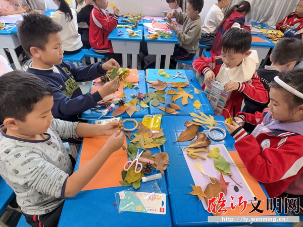 三(20)中隊(duì)的少先隊(duì)員們走進(jìn)生生園,開展了“拾一片金黃,畫一紙秋天”戶外實(shí)踐活動(dòng)。隊(duì)員們興致盎然地?fù)焓捌瘘S綠交織的銀杏葉及其他落葉,感受自然的真實(shí)狀態(tài)。他們充分發(fā)揮想象力,通過拼貼、添畫等方式,將收集到的秋日素材變成一幅幅獨(dú)具童趣的自然畫作,在親身體驗(yàn)中提升了審美創(chuàng)造能力,也深化了對(duì)家鄉(xiāng)和自然的熱愛。 室內(nèi)巧手作,落葉煥新生