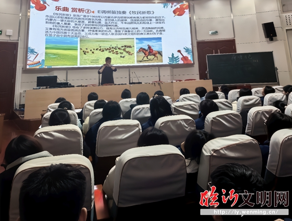本次活動(dòng)特邀民盟盟員、市政協(xié)委員、民盟藝術(shù)團(tuán)負(fù)責(zé)人于海濤先生擔(dān)任主講。作為民盟藝術(shù)總支“我們的中國夢·藝術(shù)進(jìn)萬家”系列公益活動(dòng)之一,講堂內(nèi)容豐富多彩,形式生動(dòng)活潑。于海濤先生從古代“八音”分類講起,如數(shù)家珍般地為同學(xué)們梳理了民族吹管樂的源流脈絡(luò),詳細(xì)介紹了笛、簫、塤、陶笛、葫蘆絲、巴烏等多種樂器的特色與歷史。 理論講解與現(xiàn)場演奏交織進(jìn)行是本次講堂的最大亮點(diǎn)。于海濤先生傾情演繹了九首經(jīng)典曲目:梆笛獨(dú)奏《牧民新歌》高亢明亮,描繪出草原的遼闊生機(jī);新笛《秋湖月夜》寧靜悠遠(yuǎn),勾勒出詩意的湖光山色;簫曲《枉凝眉》婉轉(zhuǎn)低回,陶笛《故鄉(xiāng)的原風(fēng)景》深情款款……一曲曲美妙的樂章將篤學(xué)廳化為流動(dòng)的音樂殿堂,同學(xué)們凝神聆聽,目光追隨演奏者的指尖,完全沉浸在音韻的起伏之間,感受著民族音樂跨越時(shí)空的獨(dú)特魅力。 在互動(dòng)環(huán)節(jié),同學(xué)們踴躍提問,現(xiàn)場氣氛熱烈。活動(dòng)結(jié)束后,學(xué)生們紛紛表示,這不僅是一堂精彩的音樂鑒賞課,更是一次深刻的文化洗禮,讓文化自信的種子悄然植根心間。 此次家長講堂活動(dòng),是臨沂四中踐行“家校共育”理念的生動(dòng)縮影。學(xué)校通過盤活家長優(yōu)質(zhì)資源,成功拓寬了育人渠道,讓傳統(tǒng)文化在校園中生根發(fā)芽,為學(xué)子們的全面發(fā)展提供了多元滋養(yǎng),也為文明校園、文明城市的建設(shè)增添了動(dòng)人的藝術(shù)色彩。(王耀艷) |