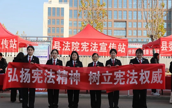 12月4日是我國第十一個(gè)國家憲法日,臨沭縣人民法院干警來到曹洼大集和縣文化廣場開展“12?4”國家憲法日集中宣傳活動(dòng)。