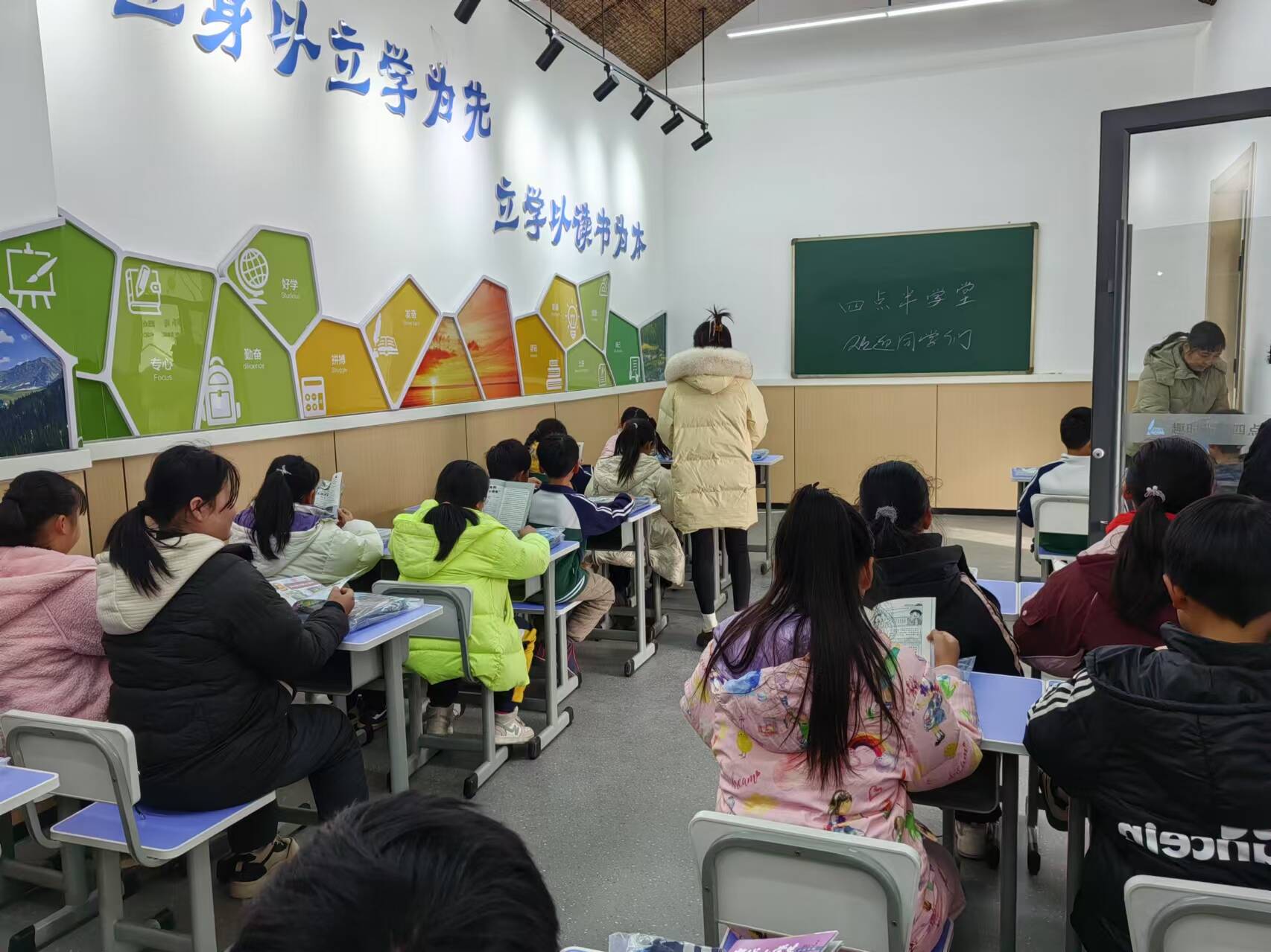 “這項(xiàng)活動(dòng)非常好,孩子的作業(yè)有人輔導(dǎo),可以玩一些科普知識(shí)和游戲,還可以讓孩子交一些新朋友?!眮?lái)接孩子回家的村民楊彩霞告訴記者。學(xué)生李子軒:(以前)一回家就打開(kāi)電視看,有時(shí)作業(yè)沒(méi)寫(xiě)?,F(xiàn)在來(lái)到這里,氛圍挺好,又有老師監(jiān)督寫(xiě)作業(yè),做完作業(yè)還可以看課外書(shū),還交到了新朋友,性格也變得開(kāi)朗了。” “作為我們老師來(lái)說(shuō),‘四點(diǎn)半課堂’大大提高了學(xué)生下午放學(xué)后的安全性,學(xué)生等待家長(zhǎng)時(shí)可以和同學(xué)一起看書(shū)、寫(xiě)作業(yè),家長(zhǎng)和我們都比較放心。”益海小學(xué)的王老師提到。