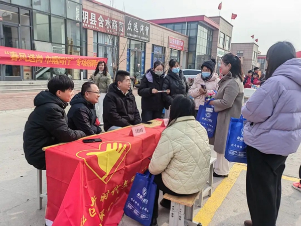 共富集市熱鬧現(xiàn)場。 “小集市”撬動“大民生”,精準服務(wù)促就業(yè) 就業(yè)是最大的民生。為幫助社區(qū)居民實現(xiàn)“家門口”就業(yè),本次活動特別設(shè)置了“共富招聘區(qū)”,吸引了23家企業(yè)參與,涵蓋制造業(yè)、服務(wù)業(yè)、電子信息、銷售客服、家政服務(wù)、餐飲酒店、物流配送、物業(yè)管理等多個行業(yè),提供就業(yè)崗位200余個。社區(qū)工作人員和志愿者現(xiàn)場為求職者提供政策咨詢、職業(yè)指導(dǎo)、簡歷打印等“一對一”貼心服務(wù),幫助他們找到心儀的工作?!拔抑耙恢痹谕獾卮蚬?,今年想在家門口找份工作,方便照顧老人和孩子。”社區(qū)居民邢先生在招聘會上與一家物業(yè)公司達成了就業(yè)意向,臉上洋溢著喜悅的笑容。