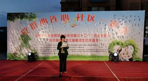 為推動文化社區(qū)建設(shè),增強鄰里之間的凝聚力,營造鄰里守望相助、共建美好家園的濃厚氛圍,5月11日,由蒙陰縣婦聯(lián)、縣關(guān)工委、縣委社會工作部、縣教體局、縣文明辦等部門指導(dǎo)、縣家庭教育研究會承辦的“黨群心連心 社區(qū)一家親”第三屆睦鄰文化聯(lián)誼會在天賜良園小區(qū)舉辦。