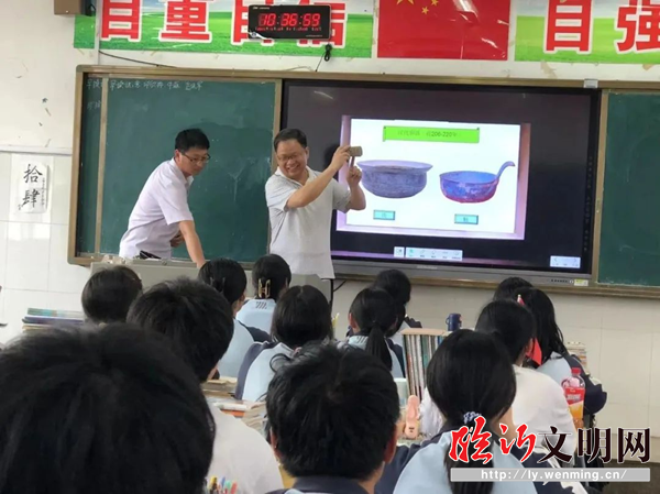 活動現(xiàn)場,縣博物館工作人員以“講座+展板講解”的形式為學校師生獻上多彩歷史文化盛宴,將珍貴的歷史文物資料與豐富的歷史知識送進課堂。精心制作的歷史文物展板圖文并茂、內容豐富,吸引同學們沉浸其中,工作人員的講座、解說讓在場師生更加了解博物館工作內容,了解家鄉(xiāng)文化和文物故事,激發(fā)了他們學習文物知識的熱情。