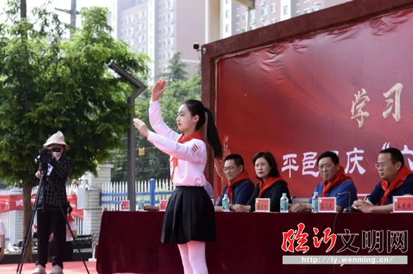 在嘹亮的出旗曲中,平邑縣“六一”兒童節(jié)主題隊(duì)日第一階段活動(dòng)拉開帷幕。 唱隊(duì)歌