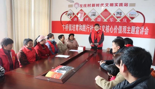開展移風易俗主題宣講活動,拍攝宣講微視頻《移風易俗三句半》,用群眾喜聞樂見的形式倡導廣大群眾踐行婚事新辦、喜事簡辦、勤儉節(jié)約的文明健康生活方式,引導大家爭做文明新風的實踐者、正能量的傳播者,讓移風易俗宣講更接地氣、更有人氣。邀請縣孝善文化宣講團到卞橋鎮(zhèn)開展孝善文化傳播活動,從傳統(tǒng)文化習俗,到孝善故事進行生動講解,帶領朗誦《孝經》《大學》等國學經典,把“百善孝為先、孝為德之本”的傳統(tǒng)倫理文化深植于現場的每個人心里。一系列不同的主題活動,群眾喜歡聽、聽得懂。 黨支部理論宣講與實踐融合
