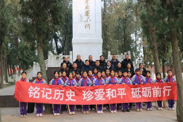 12月13日是第十一個(gè)“南京大屠殺死難者國(guó)家公祭日”,當(dāng)天,郯城縣高峰頭鎮(zhèn)中心小學(xué)組織開(kāi)展了“銘記歷史、珍愛(ài)和平”國(guó)家公祭日主題教育活動(dòng)。大批少先隊(duì)員和老師一起來(lái)到當(dāng)?shù)亓沂苛陥@,用不同形式祭典先烈、紀(jì)念緬懷慘遭日本侵略者殺戮的死難同胞。
