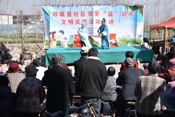 3月22日,郯城縣委宣傳部社區(qū)鄰里“益”起來文明實(shí)踐活動走進(jìn)歸昌鄉(xiāng)朱村,為當(dāng)?shù)卮迕駧砹艘粓鲐S富的文化盛宴,讓群眾在家門口就能感受到傳統(tǒng)戲曲的獨(dú)特魅力。