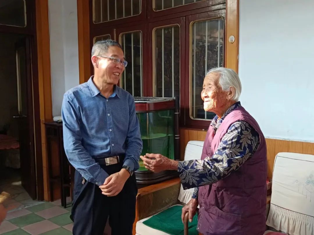 歲歲重陽,今又重陽。10月11日,沂河新區(qū)教育體育和衛(wèi)生健康局副局長盧中文、衛(wèi)生健康科科長李聰聰帶隊(duì)到相公街道開展“重陽敬桑榆 慰問暖金秋”重陽節(jié)走訪慰問百歲老人活動(dòng),為他們送去深切關(guān)懷和節(jié)日祝福。相公街道黨工委副書記、政法委員李曉艷陪同。 走訪現(xiàn)場,慰問組為老人們送上了精心準(zhǔn)備的慰問金,米、面、油、牛奶等慰問品和節(jié)日的問候與祝福。耐心聽老人們話家常,關(guān)心他們的生活情況和身體狀況,了解他們的需求。叮囑老人們天氣轉(zhuǎn)涼,早晚記得增添衣物、注意保暖,好好保重身體。一句句問候、一聲聲祝福,都深深溫暖著老人們的心,幸福之情溢于言表。