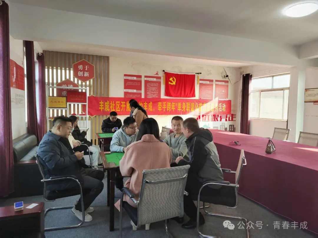 豐成社區(qū) 近日,豐成社區(qū)組織轄區(qū)未婚男女青年在社區(qū)會(huì)議室開展“相約豐成 牽手跨年”單身聯(lián)誼公益志愿服務(wù)活動(dòng)。