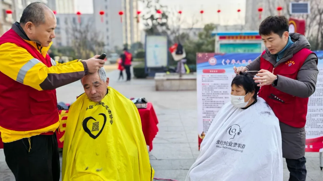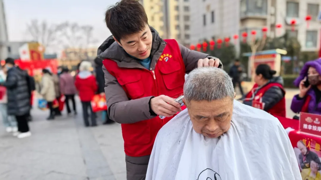 愛心義剪 溫暖從頭始 免費理發(fā)服務(wù)大受歡迎,技藝高超的理發(fā)師志愿者備好工具,耐心為每一位居民修剪頭發(fā),老人孩子皆享貼心服務(wù)。一位老奶奶理發(fā)后滿意照鏡,連聲道謝:“真好真好,新年有新氣象,謝謝你們!”
