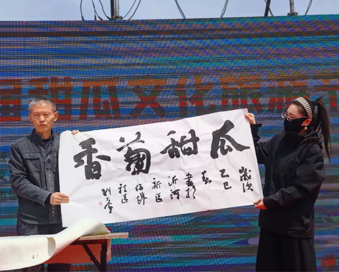 經(jīng)過激烈角逐,最終評出特等獎1名,一等獎3名、二等獎5名、三等獎13名。金鷹家電東方城店為獲獎選手提供了豐厚獎品,其他參賽選手獲得了由山東七月上生物科技有限公司提供的生物有機肥。 隨后,臨沂經(jīng)濟技術(shù)開發(fā)區(qū)西甜瓜協(xié)會監(jiān)事長龔玉軍致辭,回顧了梅家埠甜瓜產(chǎn)業(yè)的發(fā)展歷程。甜瓜種植示范戶代表武新生、解守步分享了他們的種植經(jīng)驗與產(chǎn)業(yè)發(fā)展規(guī)劃。最后,中國書法家協(xié)會會員、山東省書法家協(xié)會理事、臨沂市書法家協(xié)會副主席劉大?,F(xiàn)場潑墨,寫下“瓜甜葡香”作品,沂河新區(qū)星辰文化演出團為現(xiàn)場觀眾帶來精彩紛呈的節(jié)目。