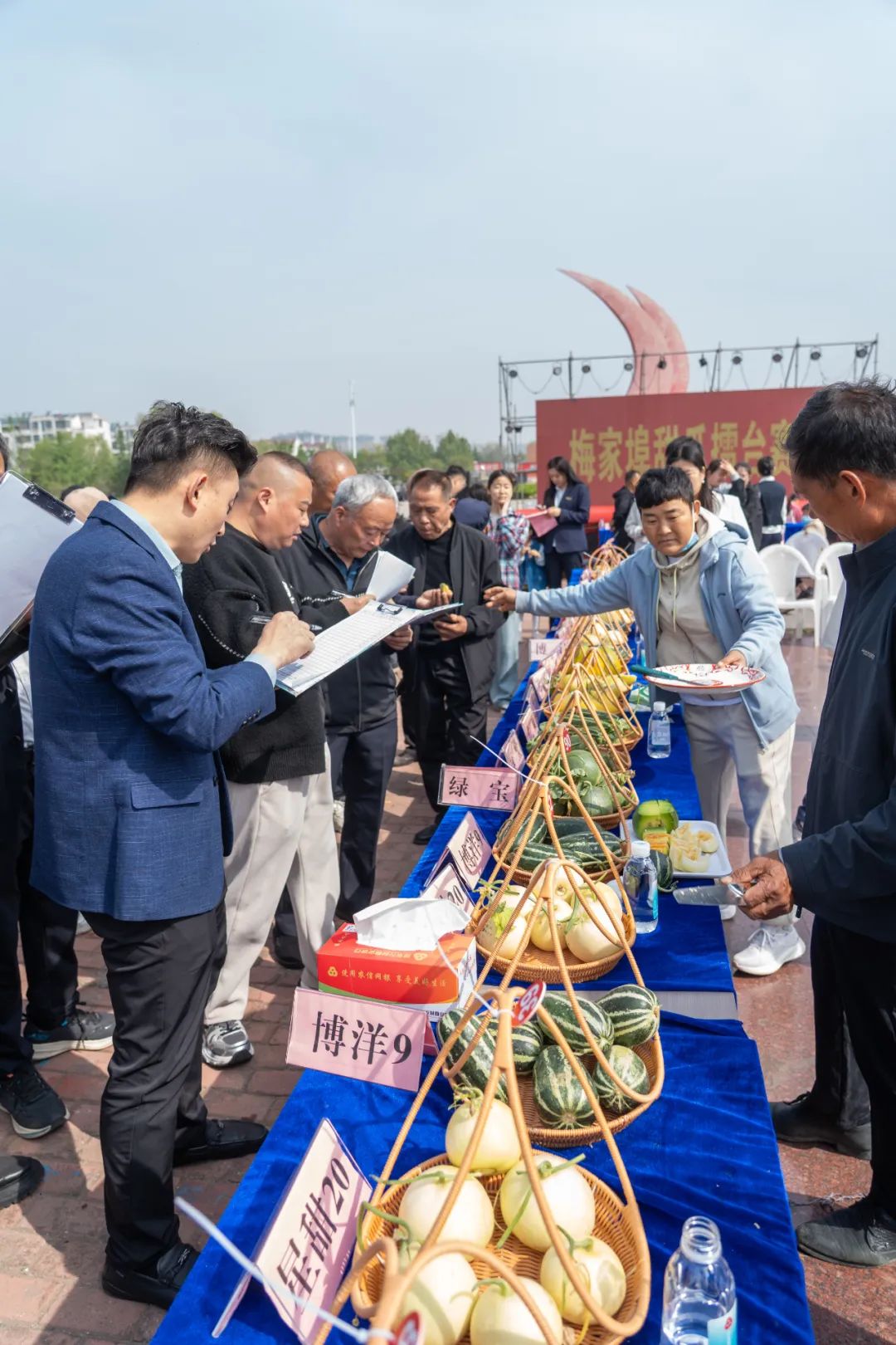活動伊始,備受矚目的甜瓜擂臺賽率先拉開帷幕。來自梅家埠街道2個家庭農(nóng)場代表、22個種瓜“土秀才”代表報名角逐,他們紛紛帶著自家精心培育的甜瓜參賽,參賽品種囊括星甜、博洋、山科蜜、甜寶、面瓜、脆瓜等6大系列30多個?,F(xiàn)場果香四溢,一個個圓潤飽滿、色澤誘人的甜瓜擺滿了展示臺,美食專家評選組對各個參賽甜瓜的外觀、色澤、香氣、脆度、風(fēng)味、剖面肉質(zhì)分門別類進行全面評比、量化打分,確定比賽名次。
