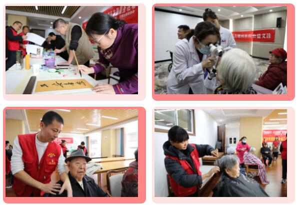 活動現(xiàn)場,沂蒙志愿者專業(yè)精心的推拿、按摩,讓老人們的胳膊、腿矜持、呆板的筋骨得到了緩解和放松。來自沂蒙志愿者服務(wù)中心和鎮(zhèn)婦聯(lián)的兩位理發(fā)師細(xì)心的修剪,讓老人們的頭發(fā)得到了梳理,感覺一下子變得精神起來。來自臨沂市書法家協(xié)會的6位書法家筆走龍蛇、揮毫潑墨,忙的不亦樂乎。平安喜樂、好事發(fā)生、厚德載物、福、壽等一幅幅新鮮的書法作品,表達(dá)了對老人們的深情美好祝福,深受現(xiàn)場老人和群眾的歡迎和喜愛。臨沂眼科醫(yī)院的醫(yī)師還為老人們開展了眼科檢查。此次活動,大力弘揚(yáng)了中華民族傳統(tǒng)美德,踐行了社會主義核心價(jià)值觀,營造了全社會關(guān)心、關(guān)愛老年人的良好氛圍,充分展示了青年、巾幗志愿者的風(fēng)采。