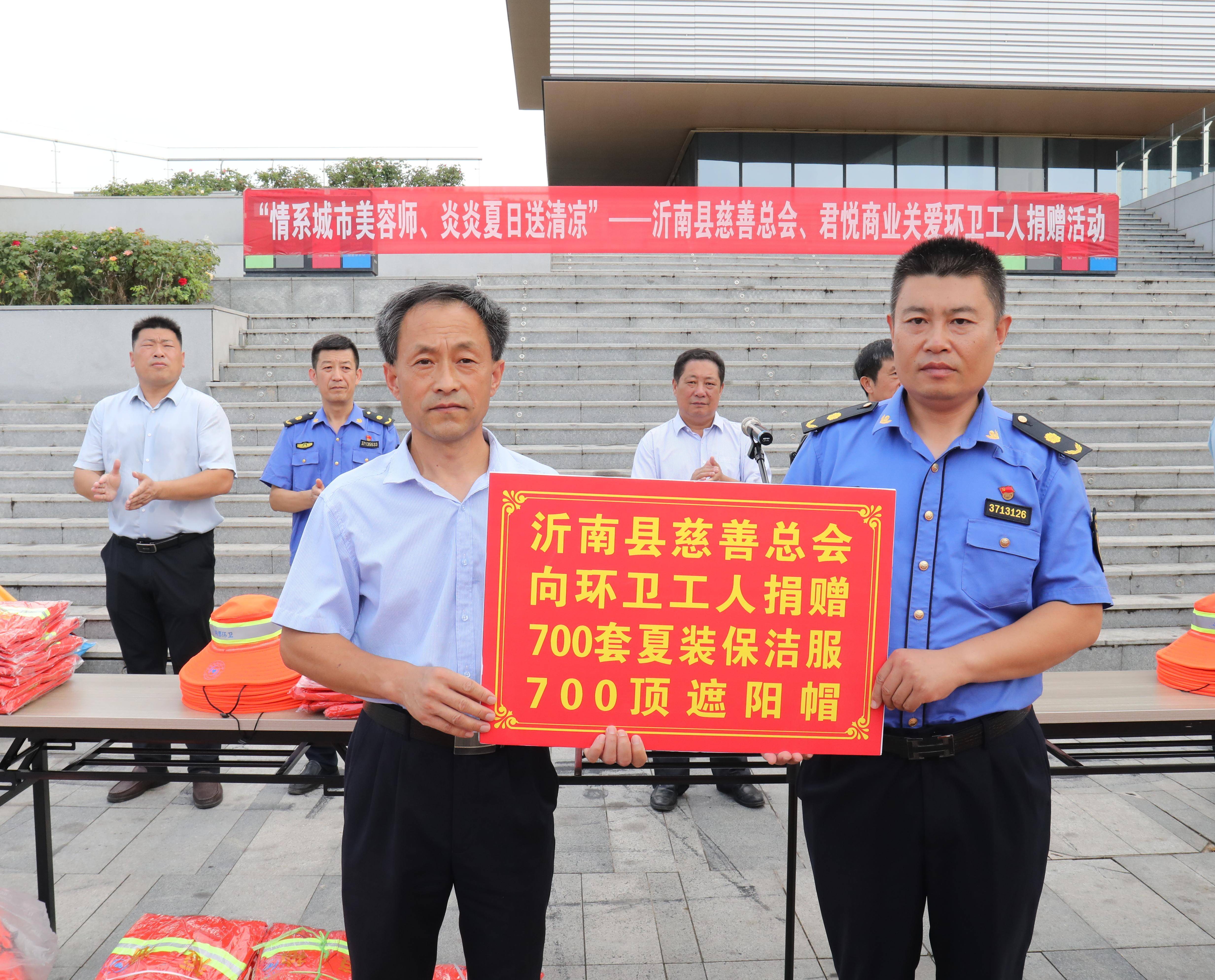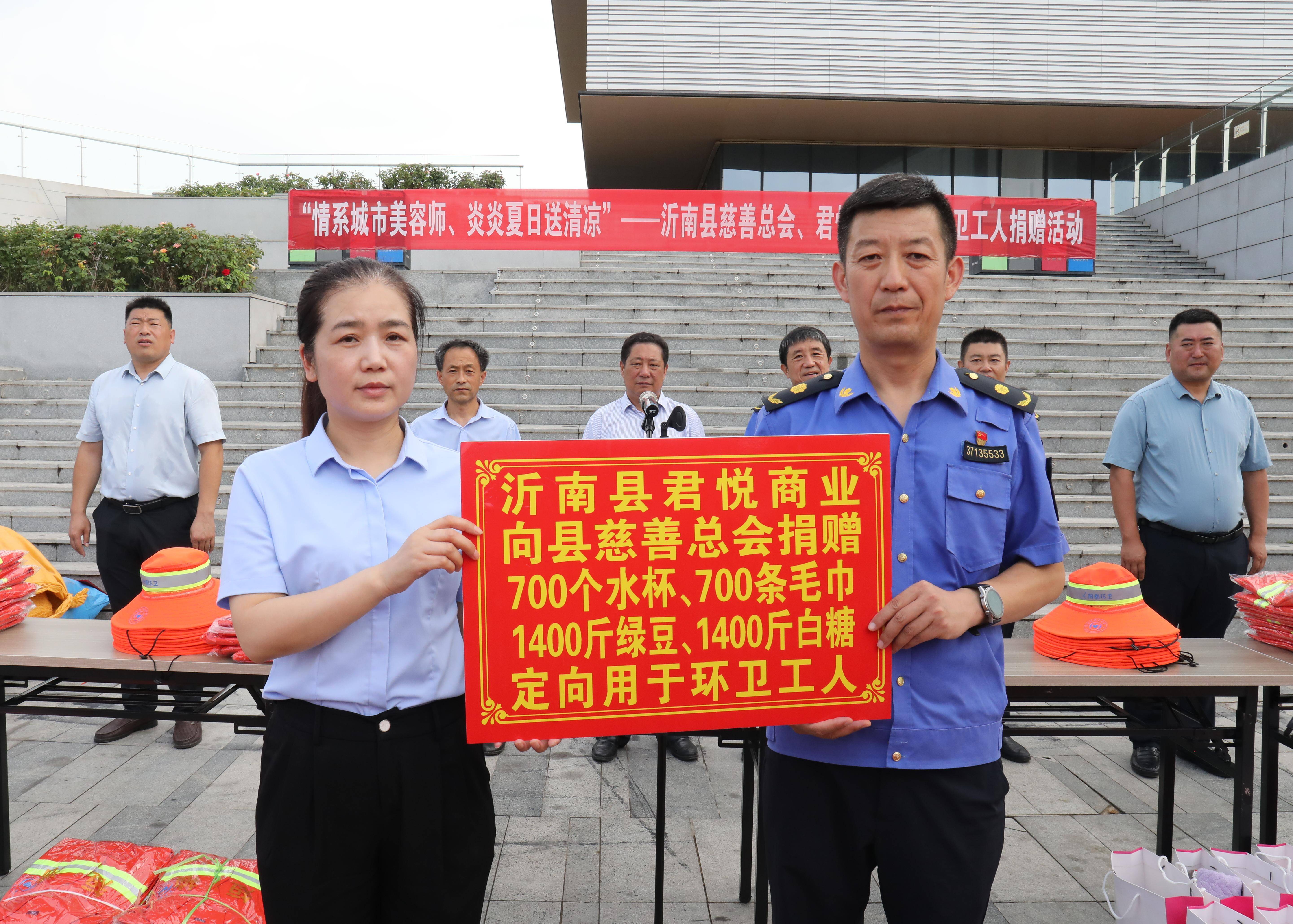 君悅商業(yè)向縣綜合行政執(zhí)法局授捐贈(zèng)牌 活動(dòng)現(xiàn)場(chǎng),700余套夏裝保潔服飾及水杯、毛巾、綠豆等防暑物資送到環(huán)衛(wèi)工人手中。 縣慈善總會(huì)向奮戰(zhàn)在一線的全體環(huán)衛(wèi)工人致以誠(chéng)摯的問(wèn)候和崇高的敬意。高度贊揚(yáng)了廣大環(huán)衛(wèi)工人為清潔沂南做出的貢獻(xiàn),同時(shí)叮囑環(huán)衛(wèi)工人們要注意防暑避暑,注意自身安全。 縣綜合行政執(zhí)法局在致辭中表示,感謝縣慈善總會(huì)和君悅商業(yè)對(duì)我縣環(huán)衛(wèi)工人的關(guān)心關(guān)愛(ài),社會(huì)各界對(duì)環(huán)衛(wèi)事業(yè)的關(guān)注與支持,希望廣大環(huán)衛(wèi)工作者始終牢記光榮使命,繼續(xù)發(fā)揚(yáng)吃苦耐勞、甘于奉獻(xiàn)的優(yōu)良傳統(tǒng),以更強(qiáng)的責(zé)任心和使命感,不斷提升城鄉(xiāng)環(huán)境品質(zhì)。 |