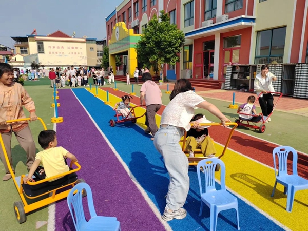 當傳統(tǒng)文化的馨香還在指尖縈繞,操場上已是一片沸騰的歡樂海洋。精心設計的親子趣味運動會拉開了帷幕!活動現(xiàn)場氣氛熱烈,歡聲笑語不斷。精心設計的游戲項目吸引了眾多家長和小朋友的熱情參與。在“小螞蟻運球”環(huán)節(jié),孩子們化身勤勞的小螞蟻,與爸爸媽媽們緊密協(xié)作,用特制的工具小心翼翼地運送著彩球,考驗著耐心與默契;“小車跑得快”比賽更是點燃了現(xiàn)場的熱情,孩子們坐在由家長推動的“小車”上,感受著風馳電掣般的速度與興奮,加油聲此起彼伏;而最受歡迎的莫過于“豬八戒背媳婦”了,家長們憨態(tài)可掬地背著自家可愛的“小媳婦”,在賽道上奮力奔跑,滑稽的動作和溫馨的畫面引得全場爆發(fā)出陣陣歡笑,將運動會的氣氛推向了高潮。整場活動妙趣橫生,不僅讓孩子們在運動中體驗了快樂、鍛煉了身體,更在合作與互動中增進了親子間的感情紐帶,為家長和孩子們共同留下了一段難忘的歡樂記憶。 圈里鄉(xiāng)