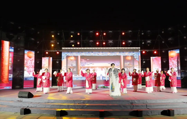 “薪火傳根脈”篇章是文化靈魂所在。對(duì)口快板《筑夢(mèng)新時(shí)代》在字字鏗鏘的聲音中,將鄉(xiāng)村振興的故事娓娓道來(lái)。經(jīng)典歌曲《沂蒙頌》瞬間喚起全場(chǎng)觀眾的紅色記憶。小劇《一場(chǎng)風(fēng)波》以跌宕起伏的劇情、接地氣的臺(tái)詞,引發(fā)觀眾強(qiáng)烈共鳴。戲曲聯(lián)唱《夢(mèng)想沂水》匯聚了全縣戲曲愛(ài)好者,唱出了沂水兒女對(duì)美好生活的憧憬。嗩吶獨(dú)奏《百鳥(niǎo)朝鳳》更是將氣氛推向高潮,高亢激昂的嗩吶聲與浯河的自然韻律融為一體,讓鄉(xiāng)親們領(lǐng)略到傳統(tǒng)技藝的魅力。