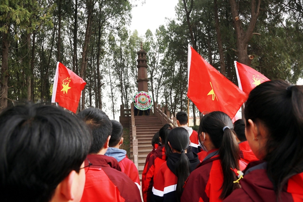 整個過程中,同學(xué)們一掃往日的喧鬧、嬉戲,靜靜地肅立著,細心聆聽,深刻領(lǐng)會。隨后,全體師生排著整齊的隊伍,繞墓碑一周,并深深鞠躬,表達對烈士的敬意與懷念。 這次活動樸素莊嚴(yán),肅然有序,不僅緬懷了烈士,祭奠了英靈,更是一堂生動深刻的愛國主義教育課,激勵著同學(xué)們繼承先烈遺志,發(fā)奮讀書,掌握本領(lǐng),用實際行動來告慰青松下長眠的烈士?。ㄉ袠s秀) |