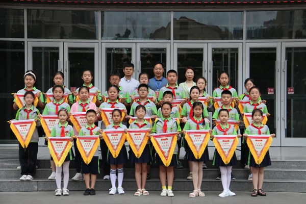 黨總支書記、少工委主任苗啟,黨總支委員、少工委副主任左愛娟,黨總支委員、少工委副主任唐學(xué)成為五星級(jí)文明班級(jí)、最美教師、最美學(xué)生、最美彎腰者頒獎(jiǎng)并合影留念。